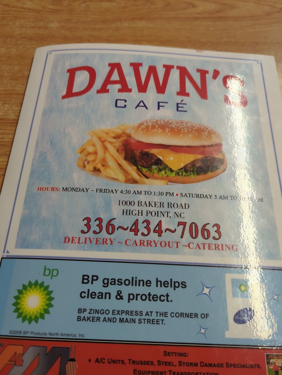 Dawn's Cafe offers a straightforward and comforting menu that suits a variety of daytime moments, from early breakfast to casual lunch. The focus is on familiar, hearty dishes that feel like a welcome pause in your day. Whether you stop by for a morning omelet or pick up a meal to enjoy at home, the menu delivers simple, satisfying options with a home-cooked warmth.